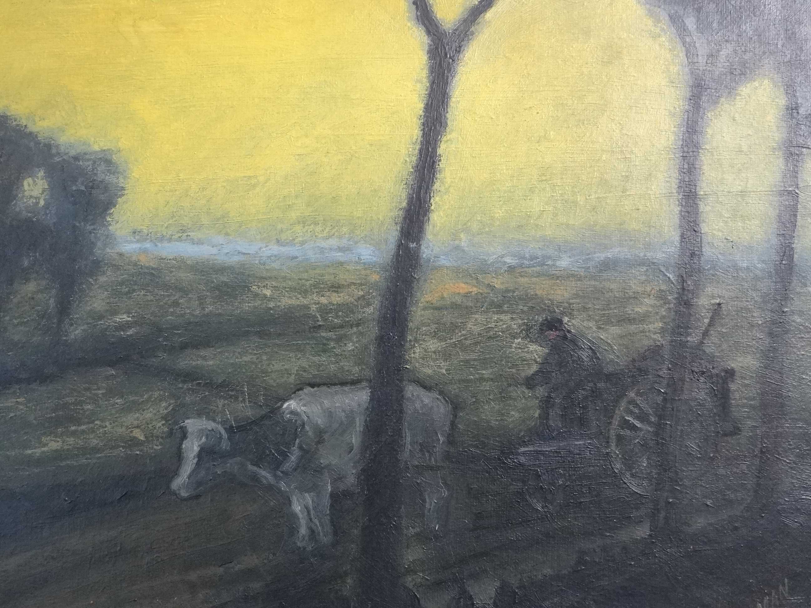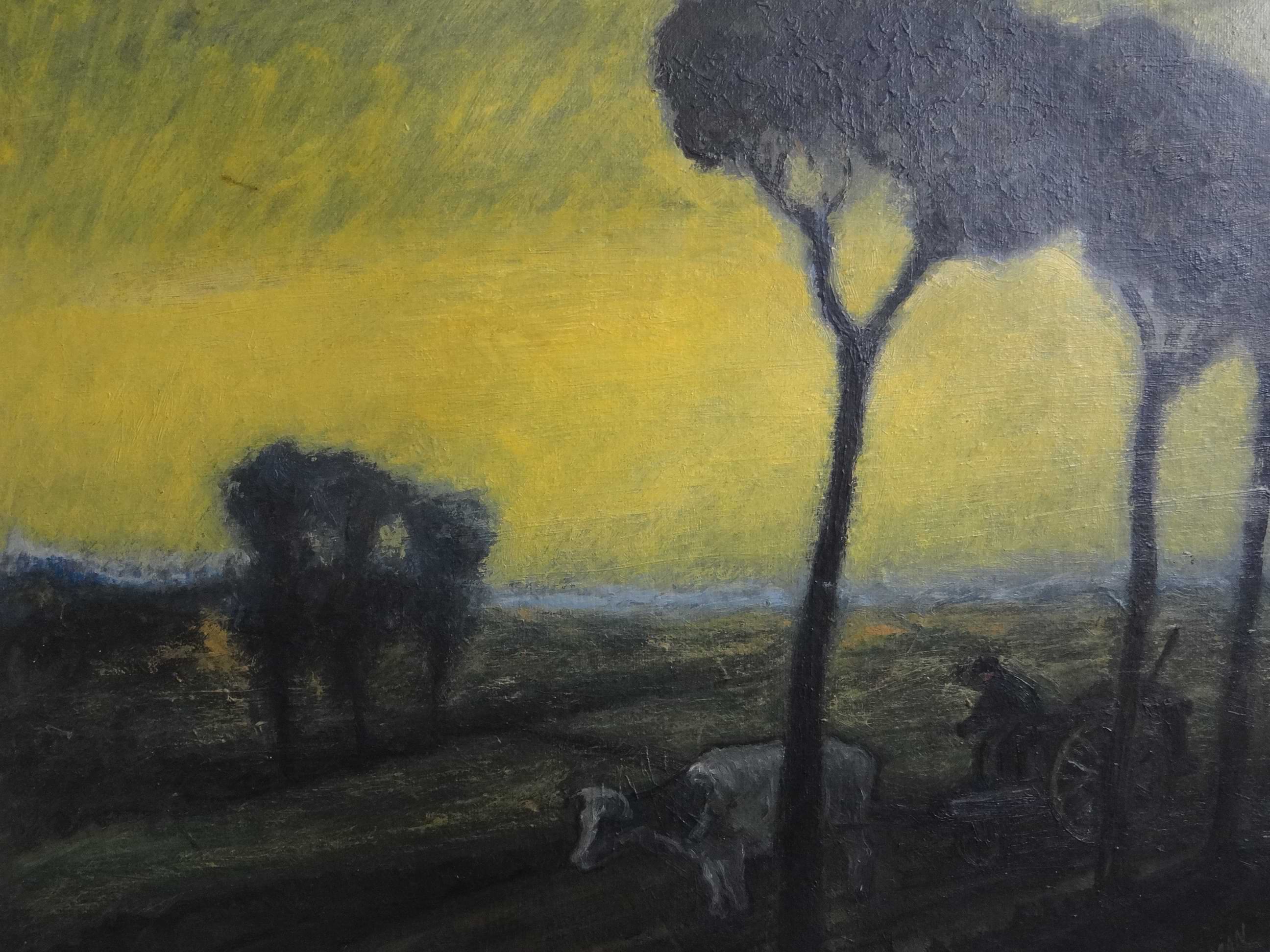 - Bauer mit Ochsengespann unter gelbem Himmel