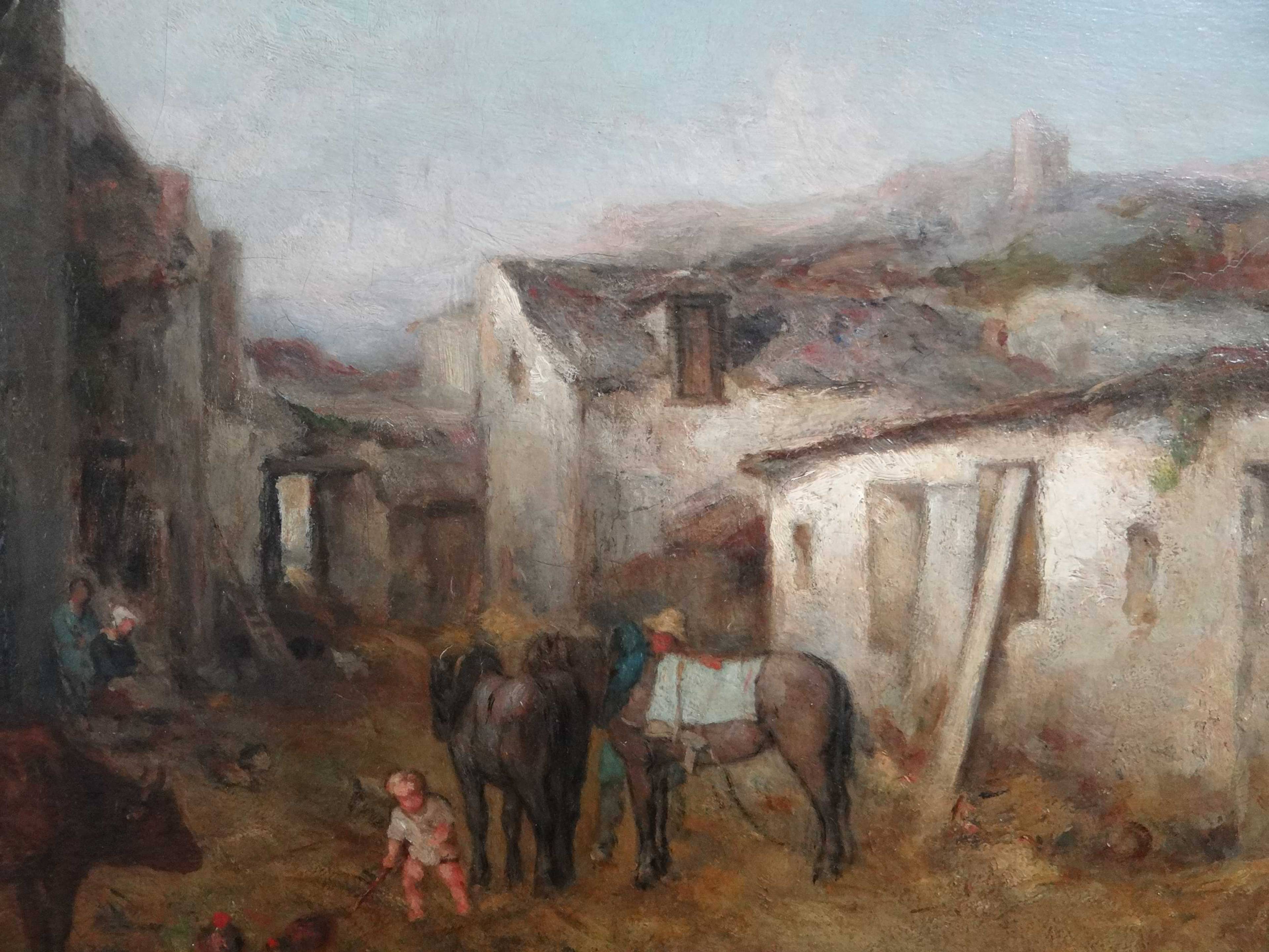 Dörfliche Bauernhofszene unter strahlend blauem Himmel
