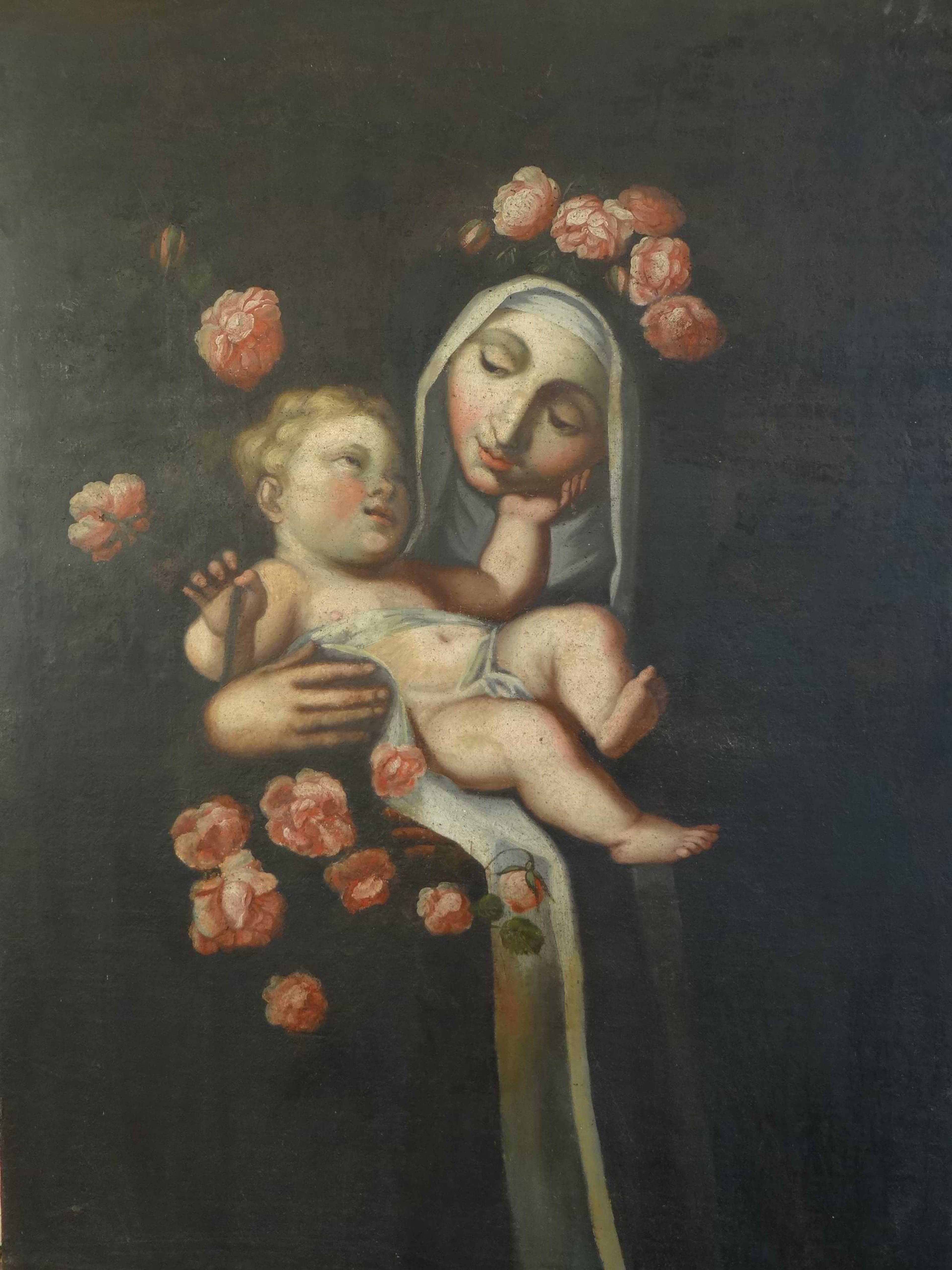Roses have always had a very special meaning. In particular, they are symbols of beauty, purity, clarity and love. In addition, the flowers with their multi-layered petals are very decorative. Because of their symbolism and decorative effect, roses are often used in art and fashion. The rose colours red and pink dominate. The name of the colour pink is derived from the rose in many languages. In this respect, the use of the colour pink in a painting also refers to the rose and thus to its symbolism. The depiction of the portrayed lady in a pink dress therefore refers to her beauty, purity and clarity. In the painting depicting the Peruvian saint Rosa of Lima, there are a multitude of pink roses, some still in bud. Rosa of Lima is thus also given the attributes of the rose. In the portrait of the girl, the pink flower colour is used to express sensitivity and tenderness, while in the fashion stitches the use of the red rose stands for passion and energy. The highly decorative Papier Peint, on the other hand, uses the pink and white roses in a purely decorative sense and makes use of the magnificent effect that the rose can also stand for. Details on the condition of the works and further photos on request.