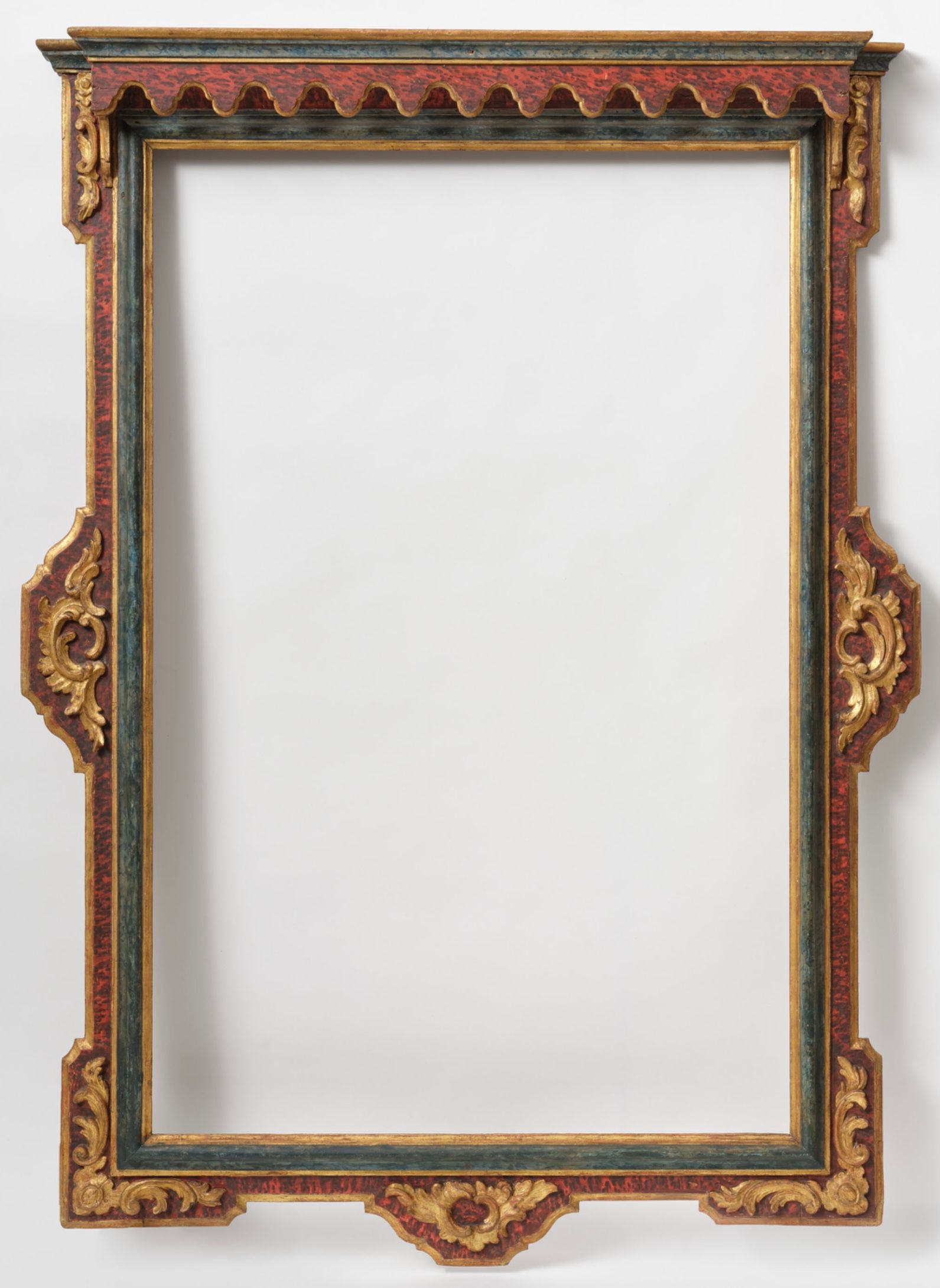 Spanischer Barockrahmen, 18. Jh., mit Rocaillen und gewelltem Fries.